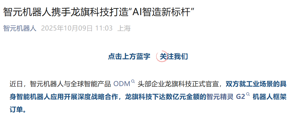 据龙旗科技通知布告,2025年上半年,龙旗科技通过此次最新合做,实现取智元机械人的财产合做,此次合做是目前国内工业具身智能机械人范畴较大的订单之一。